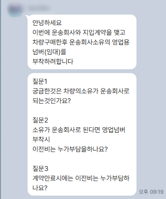 질문 1 궁금한 것은 차량의 소유가 운송회사로 되는 것인가요?
